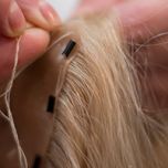 Semipermanente bevestiging, hierbij wordt het haardeel met buisjes/kraaltjes aan uw eigen haar bevestigd.